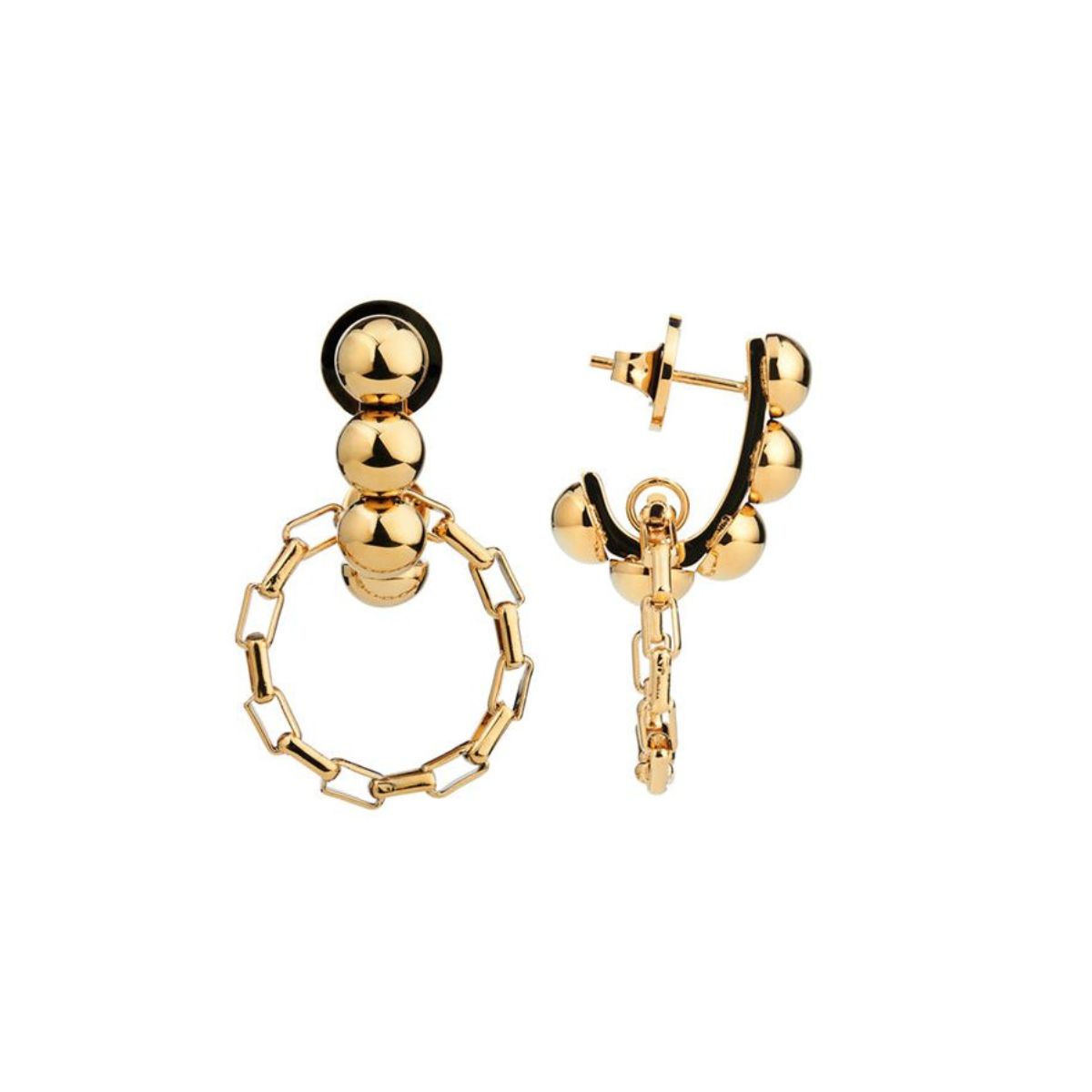 Material: 100% nickel-free 80% recycled steel with 24k PVD gold plating. Half-sphere sizes: From 6mm in diameter Ring size: 20mm in diameter Earring length: approximately 34mm.