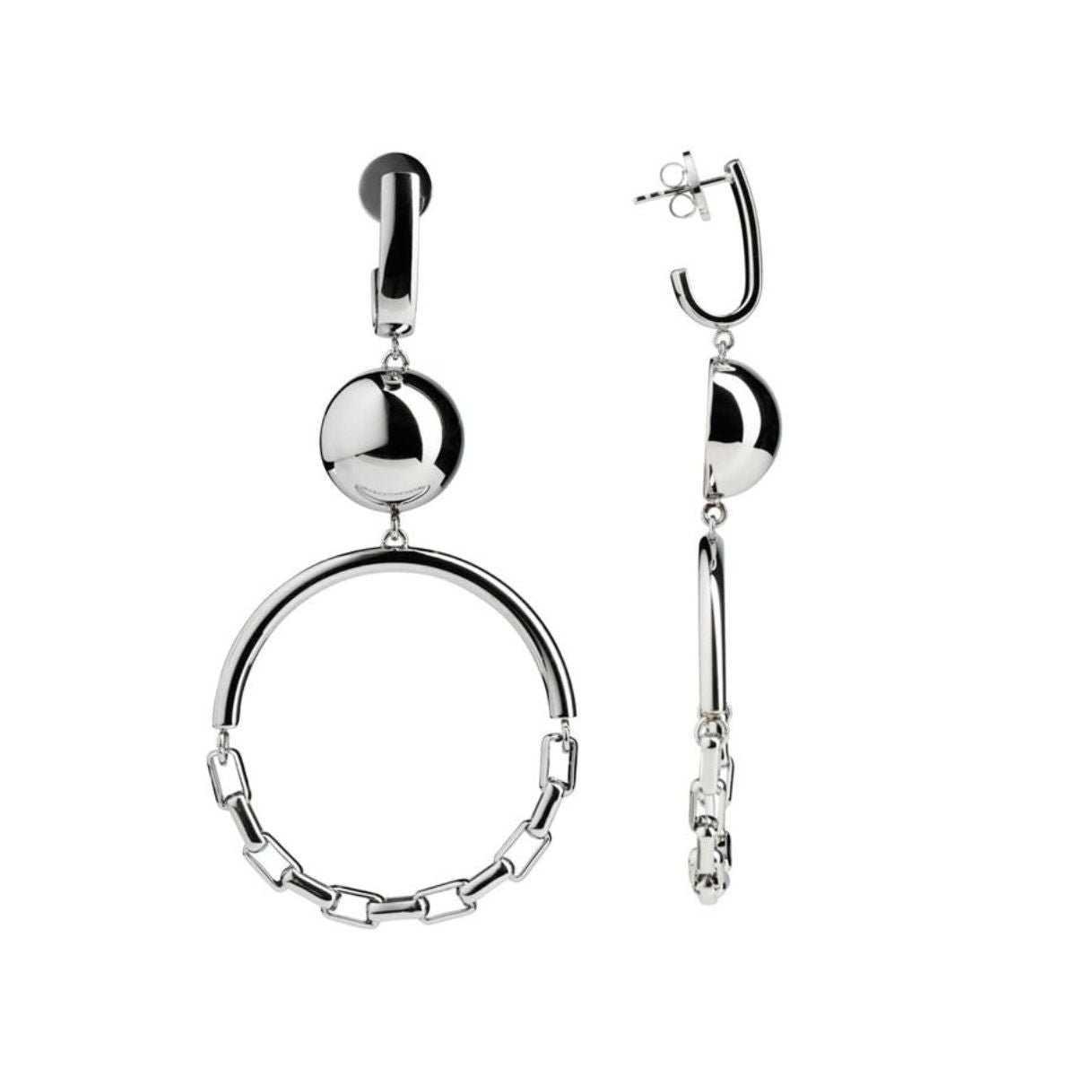Material: 100% nickel-free 80% recycled steel. Earring length: 70.5mm Half sphere size: 14mm in diameter Ring size: 42.5mm in diameter