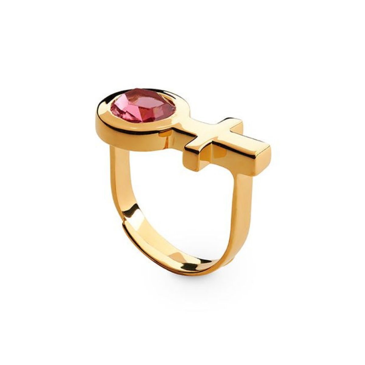 Handmade statement ring for equality as we want to wear it. We have added a colored glass stone to the symbol to give the ring a luxurious feel with weight that makes it so much more than just a feminist piece of jewelry. Choose between pink or green glass stone. Silver or gold plating. Add color to your personal style and wear it in its simplicity or together with other favorites. There is something incredibly captivating and magical about shimmering stones. Regardless of the size of the stone, they give us that extra spark in life of strength, joy, celebration, and love.