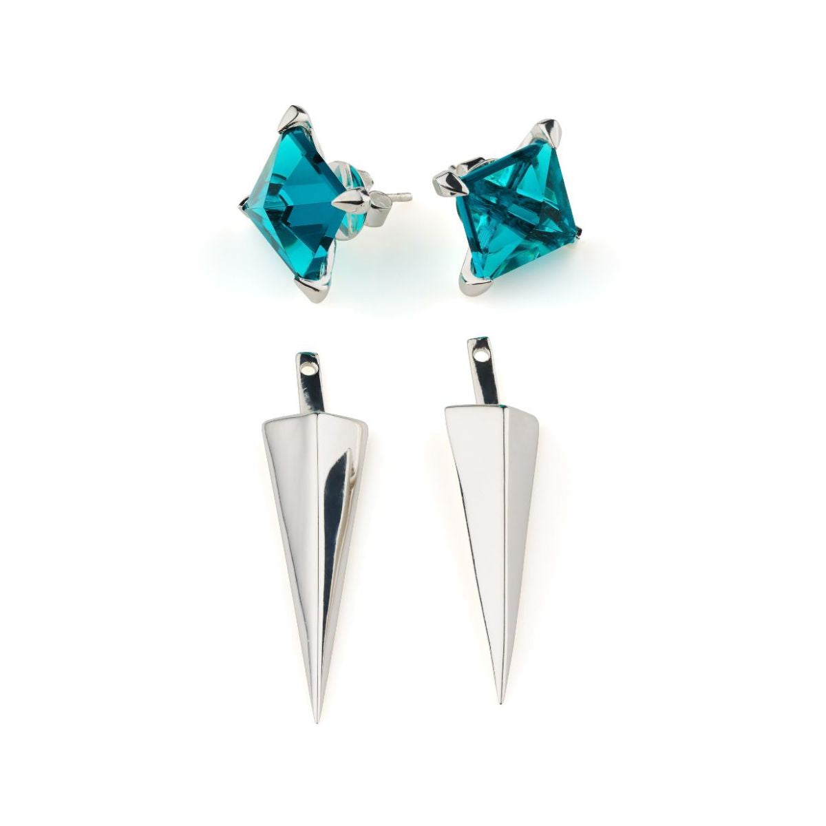 Studs with a length and width of 15 mm and a height of 8 mm. With the attached pendant, the total length becomes 48 mm.