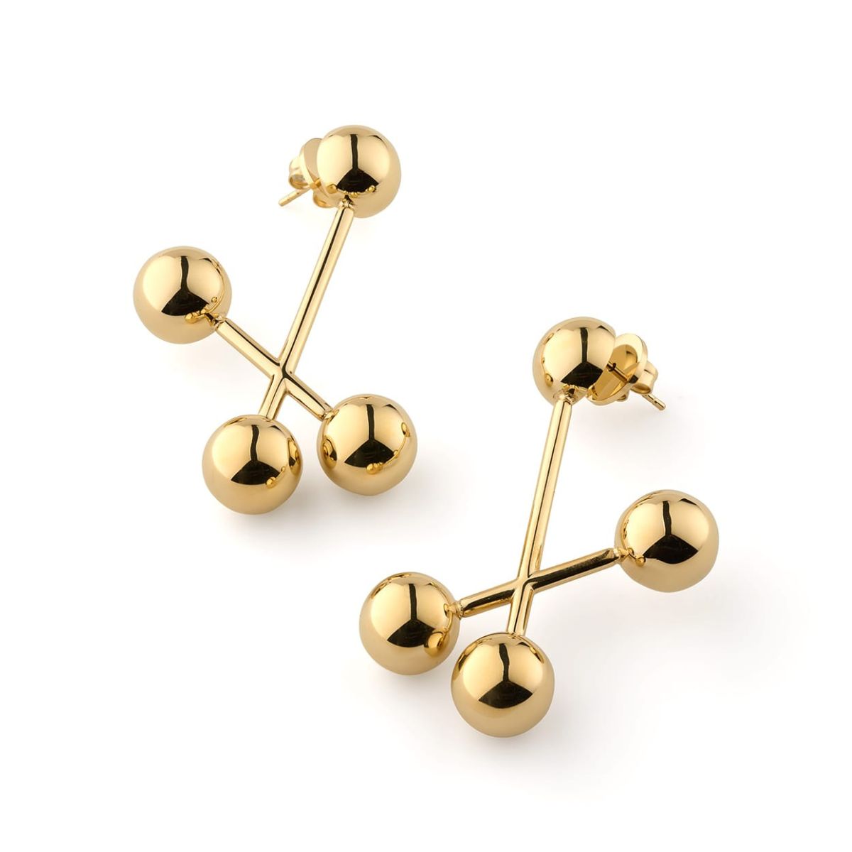 A sleek, minimalist design with a bold edge—Ariel is made for those who find strength in simplicity. With cool, precise lines and sculptural spheres reminiscent of atomic energy, these earrings strike the perfect balance between structure and fluidity.